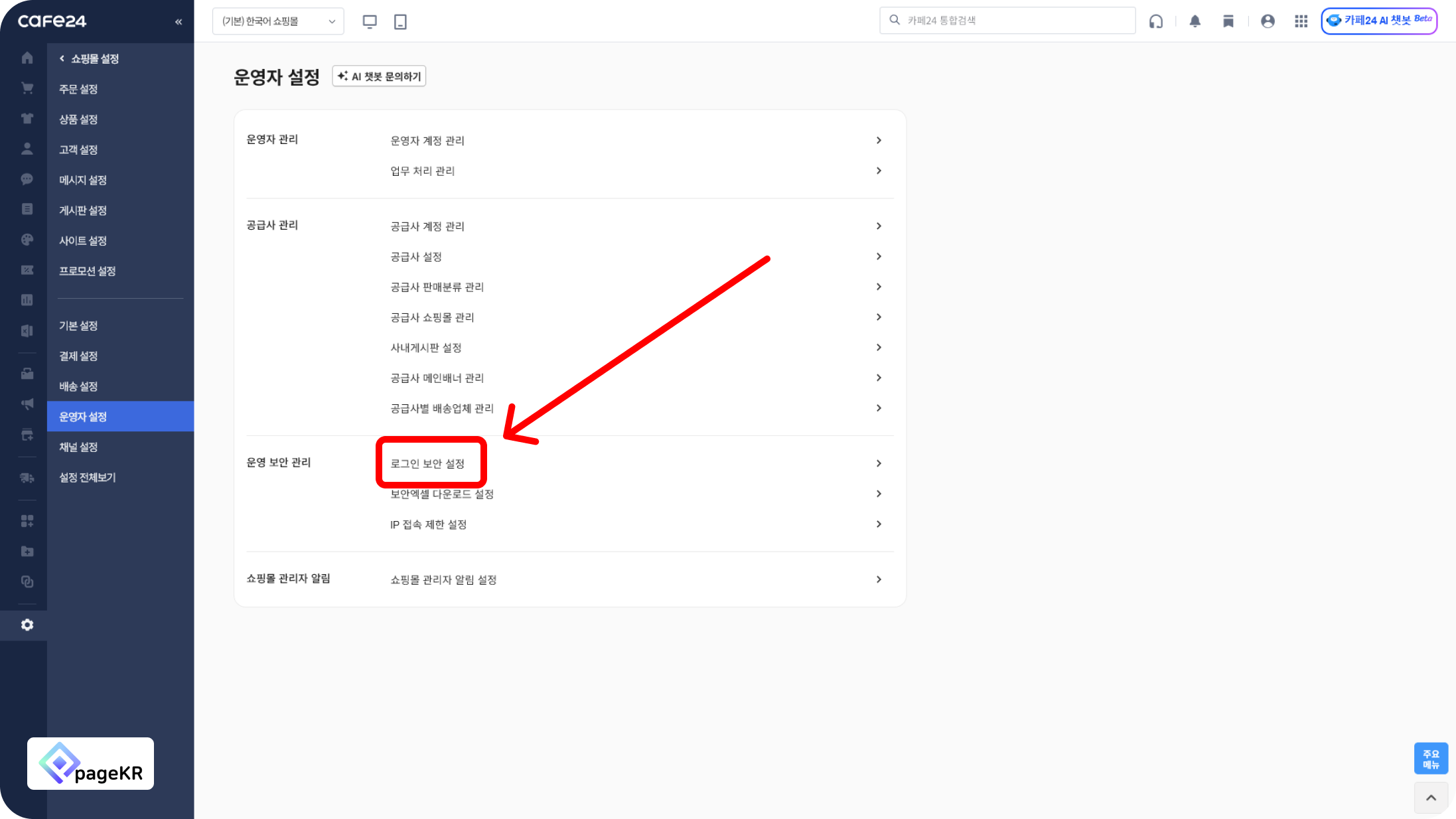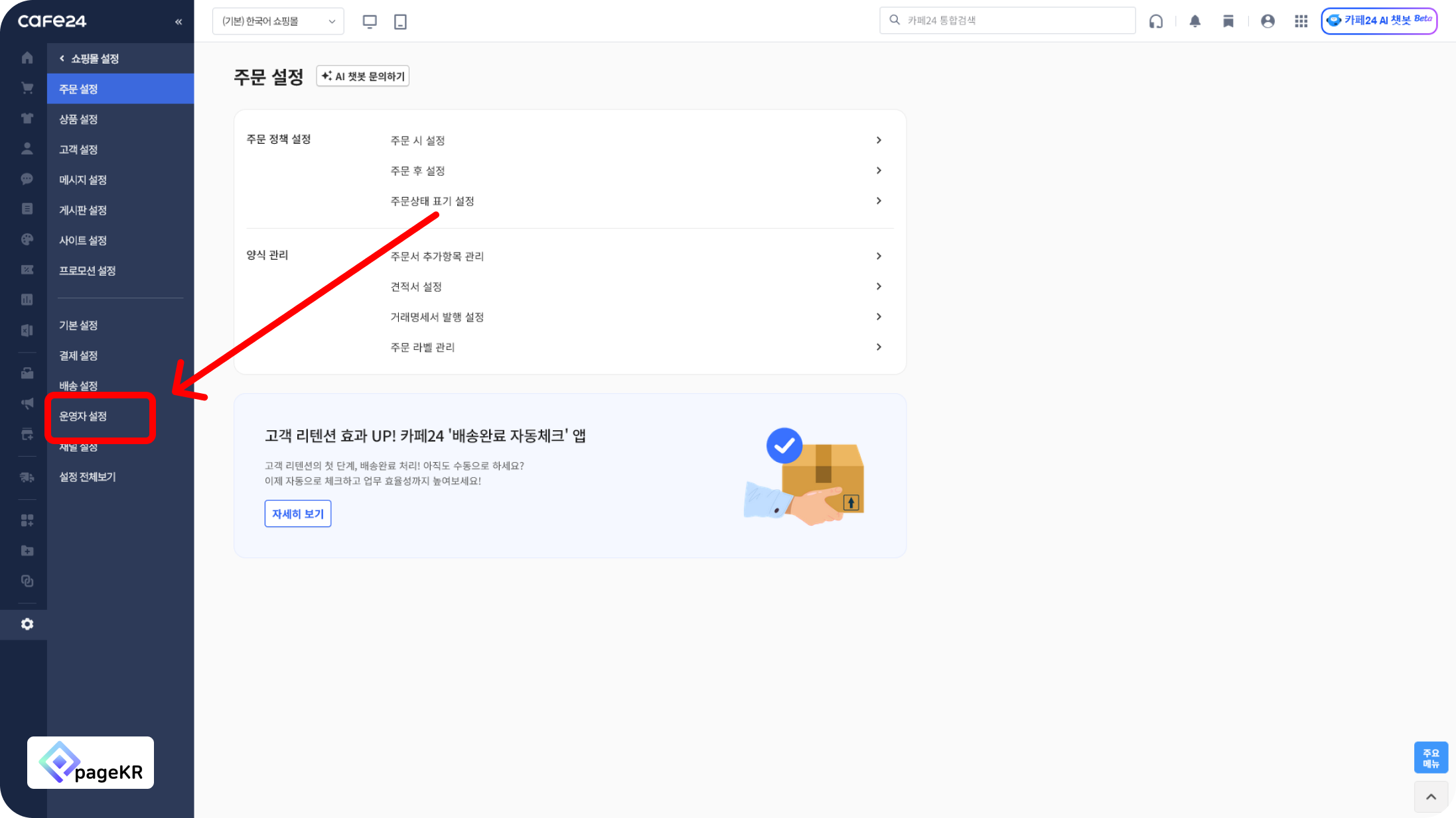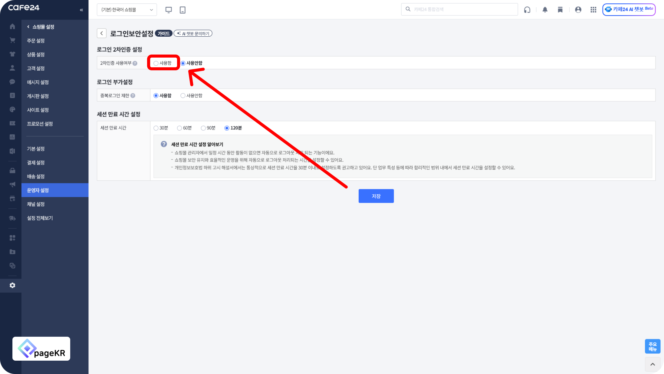 [운영자 설정]을 클릭해주세요.