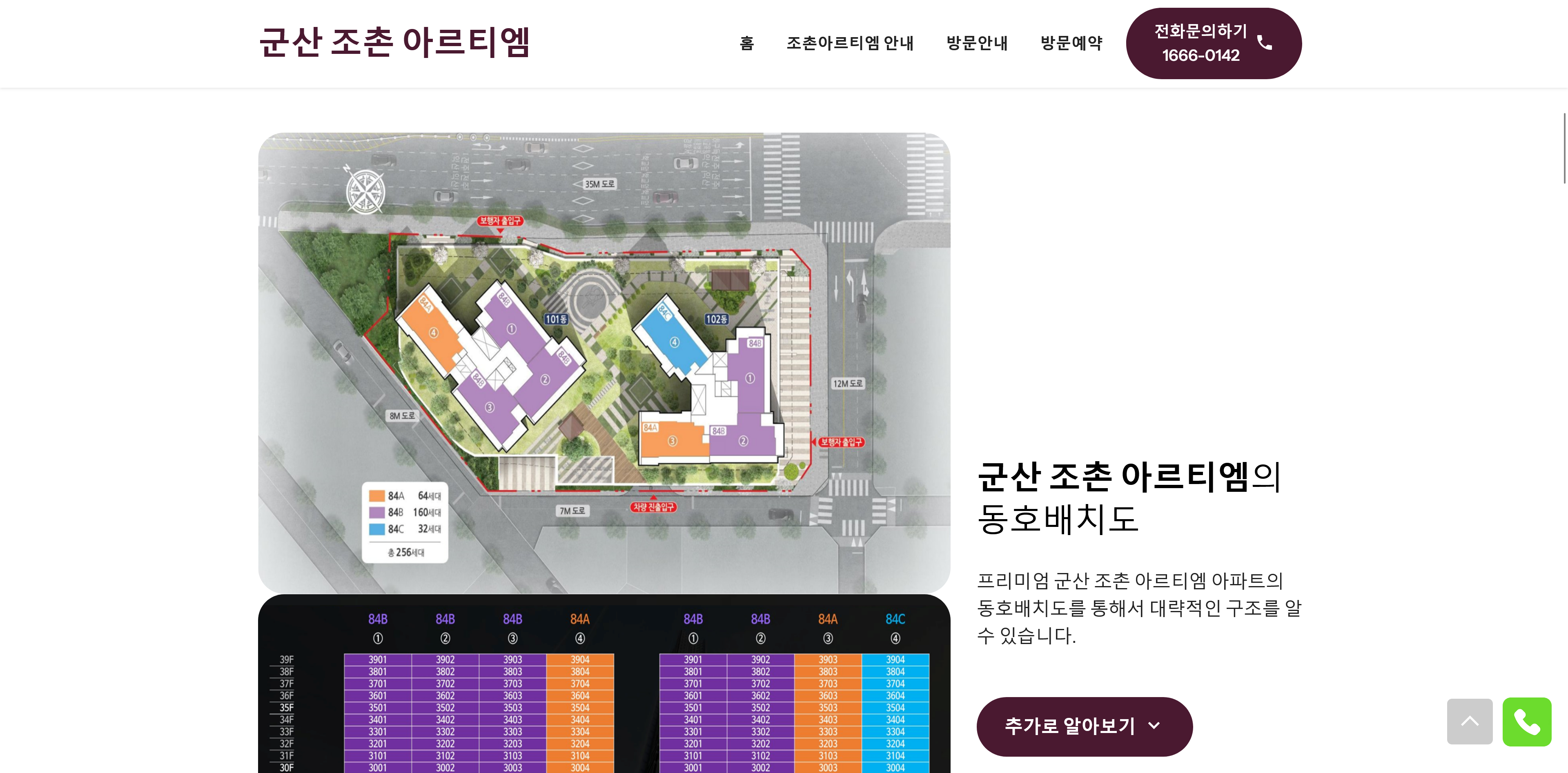 아래로 조금만 내리면 구매자가 제일 궁금할 아파트의 동호 배치표와 구조를 알 수 있는 내용이 나옵니다.
