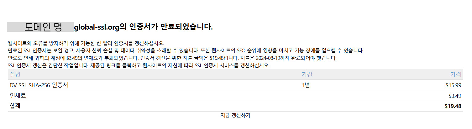 [공지사항]ssl 비용 청구 global-ssl 스팸 메일 주의