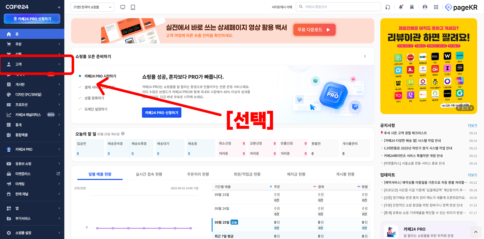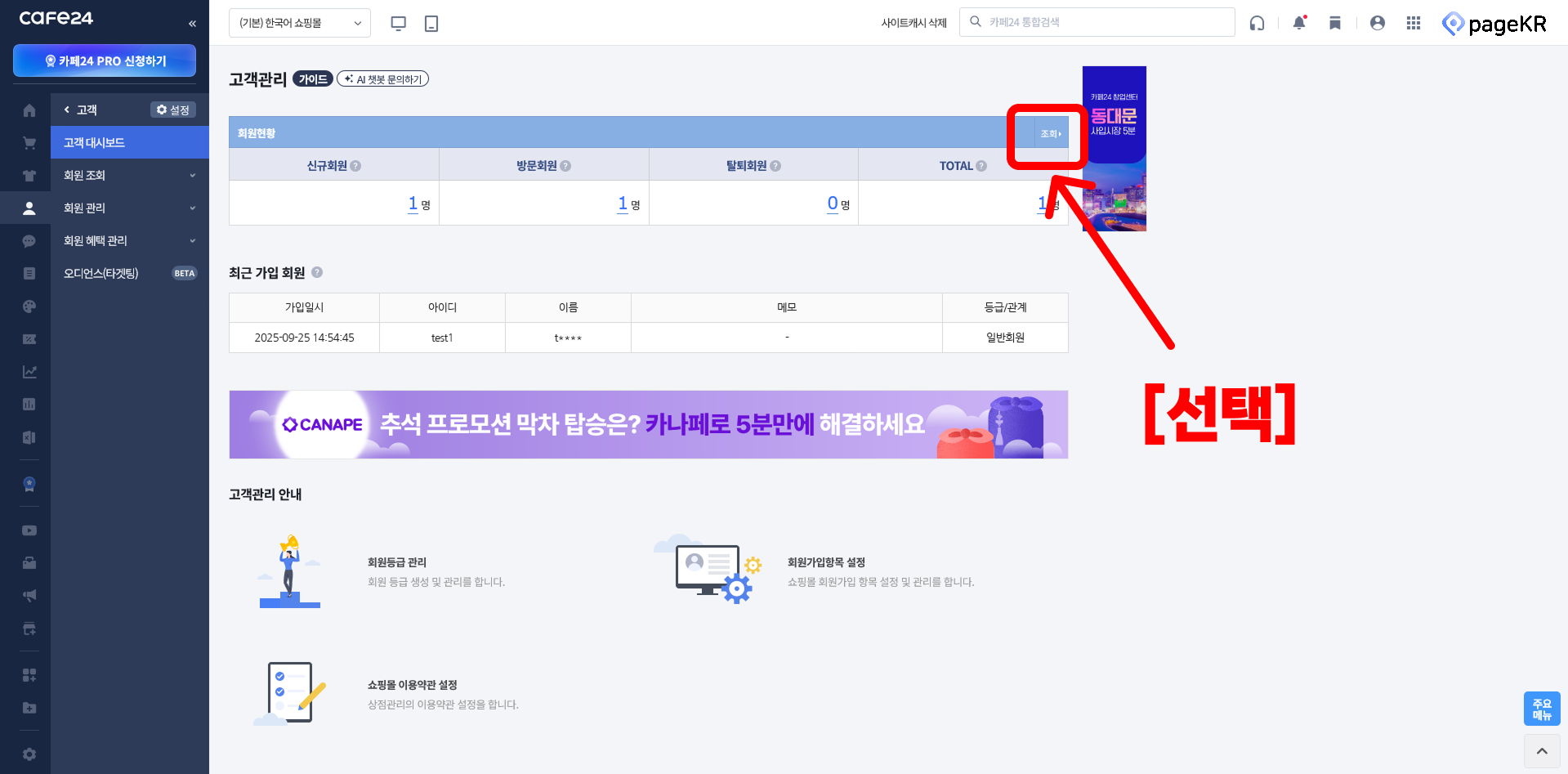 카페 24 접속하기