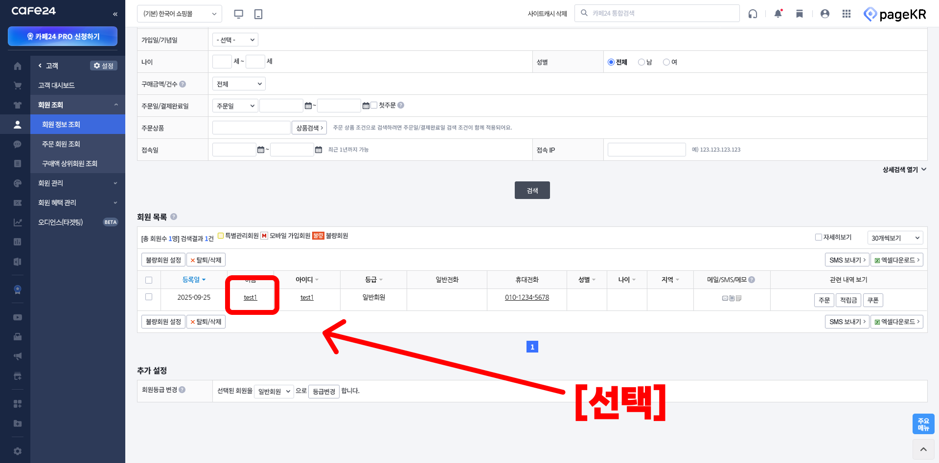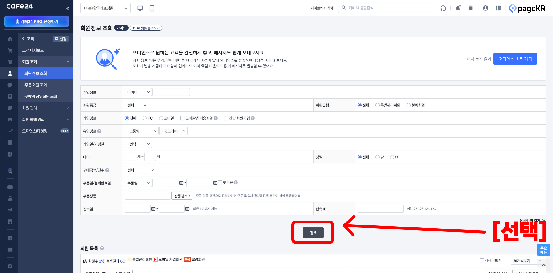 전체 고객 조회를 위해서 [검색] 버튼을 눌러주세요.
