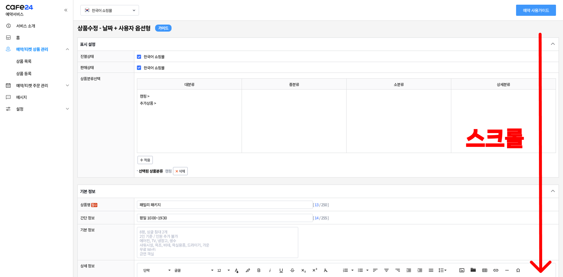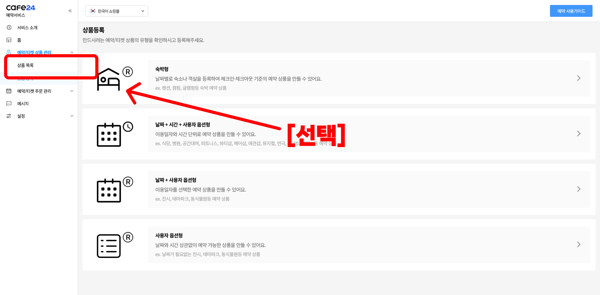[상품등록]을 눌러서 예약상품을 관리하실 수 있습니다.