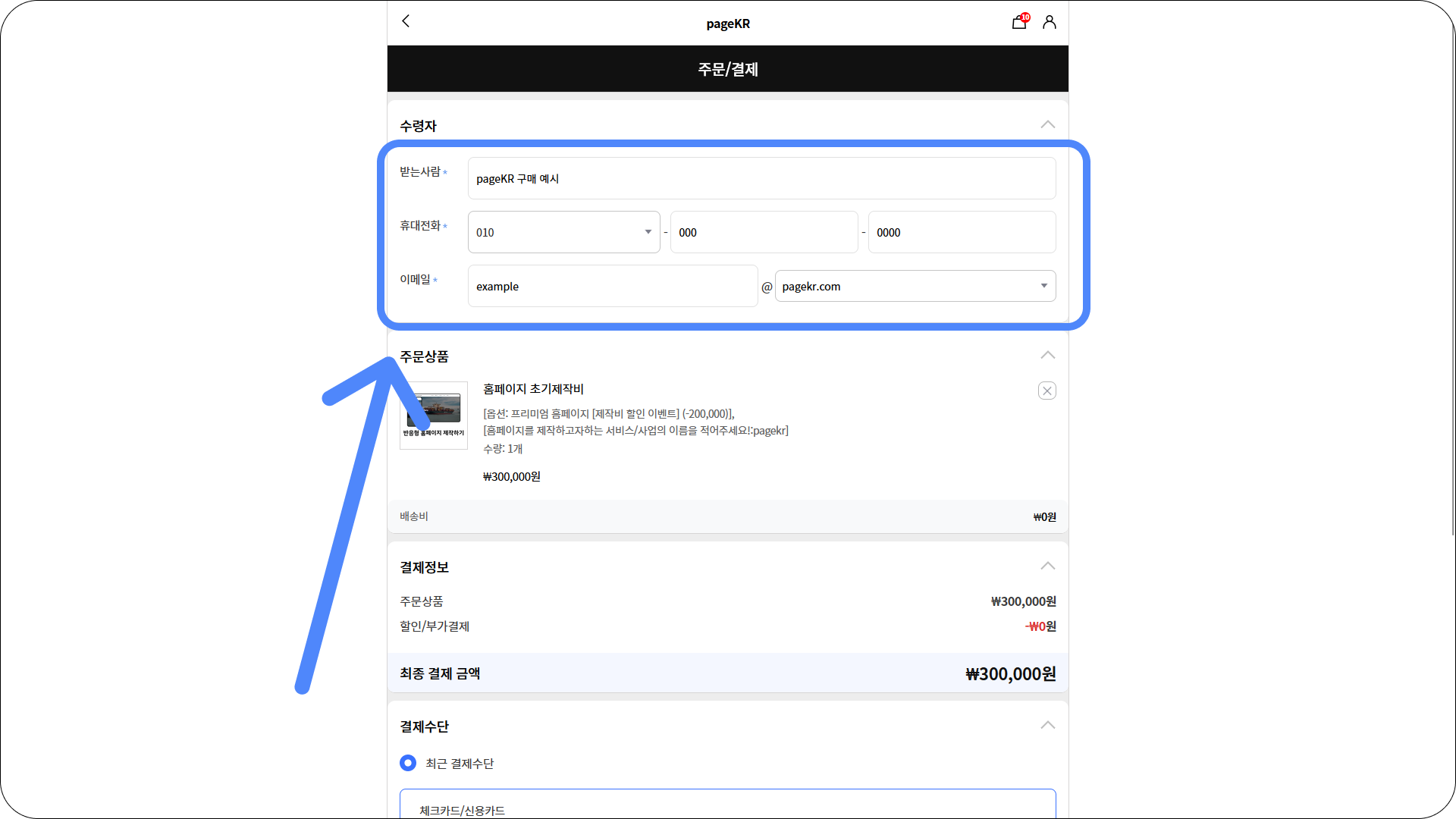 pageKR대신 사장님의 회사 이름 또는 홈페이지 이름을 적어주시면 됩니다.