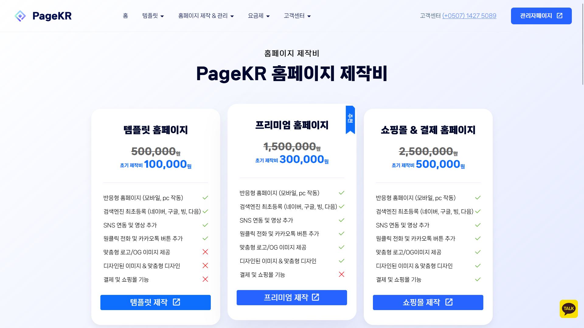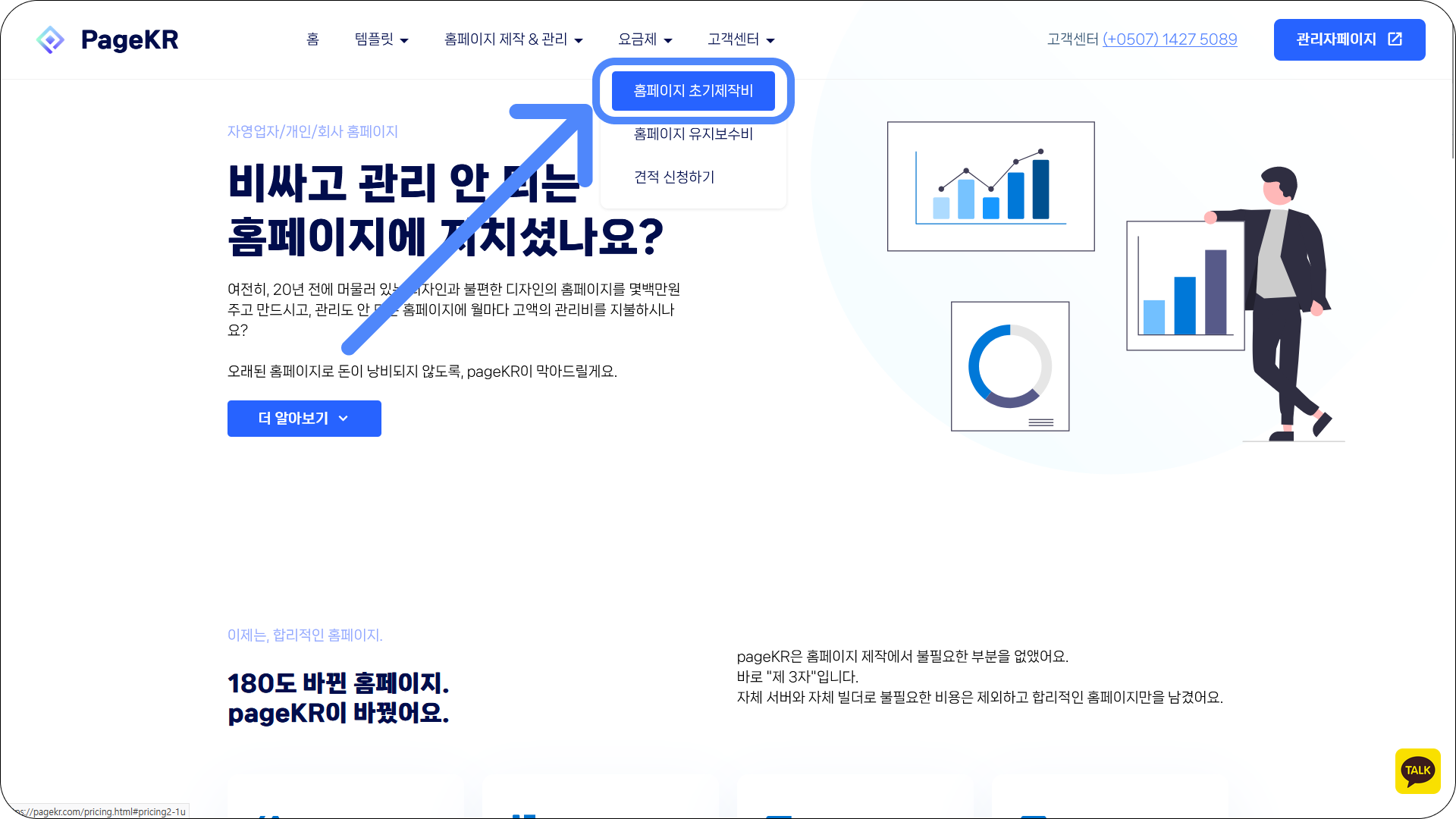 [요금제] > [홈페이지 초기 제작비]를 눌러주세요.