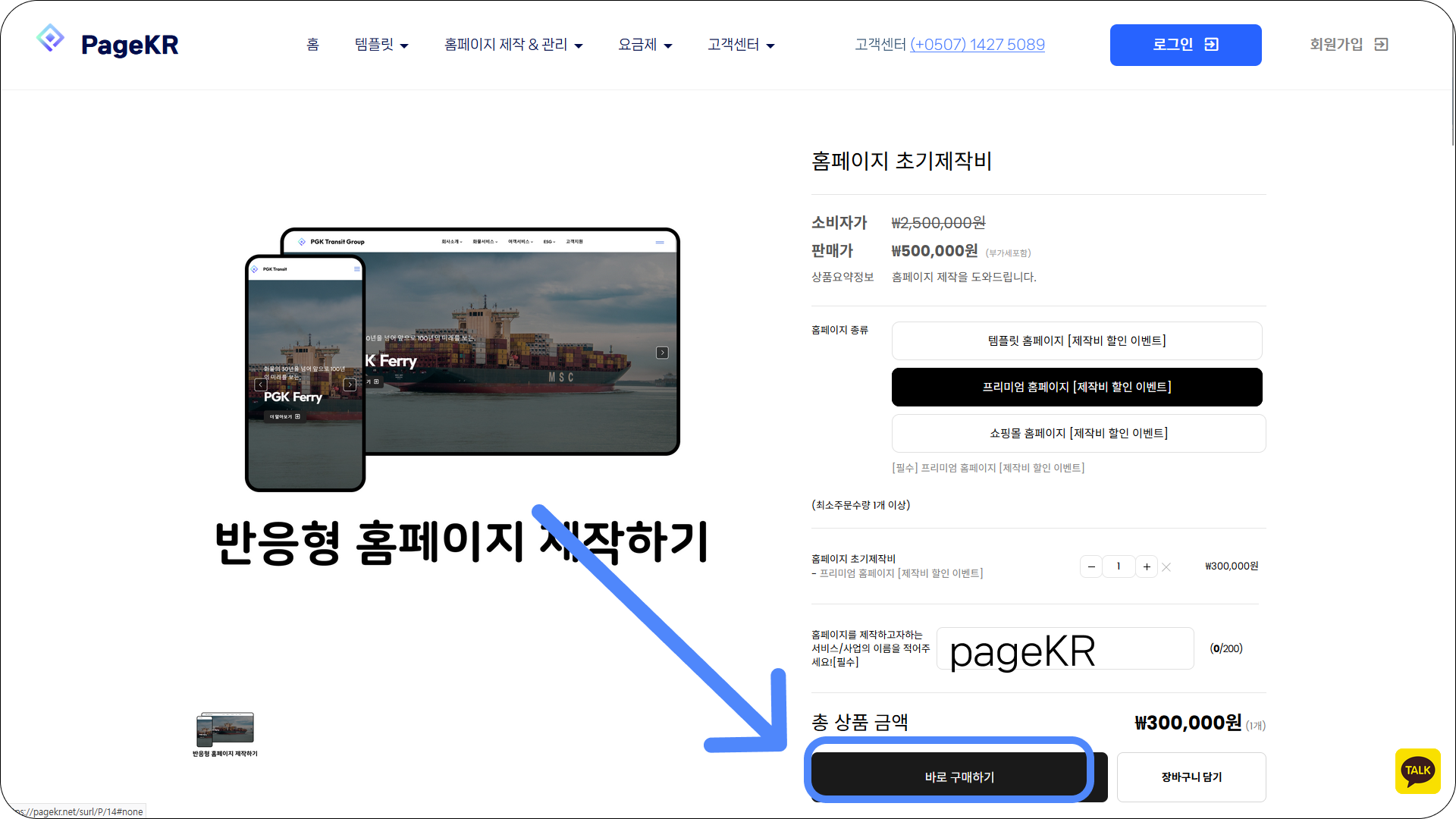 위 사진처럼 pageKR의 메인 홈페이지에 접속하시면 카카오톡 플러스친구 버튼을 보실 수 있습니다.