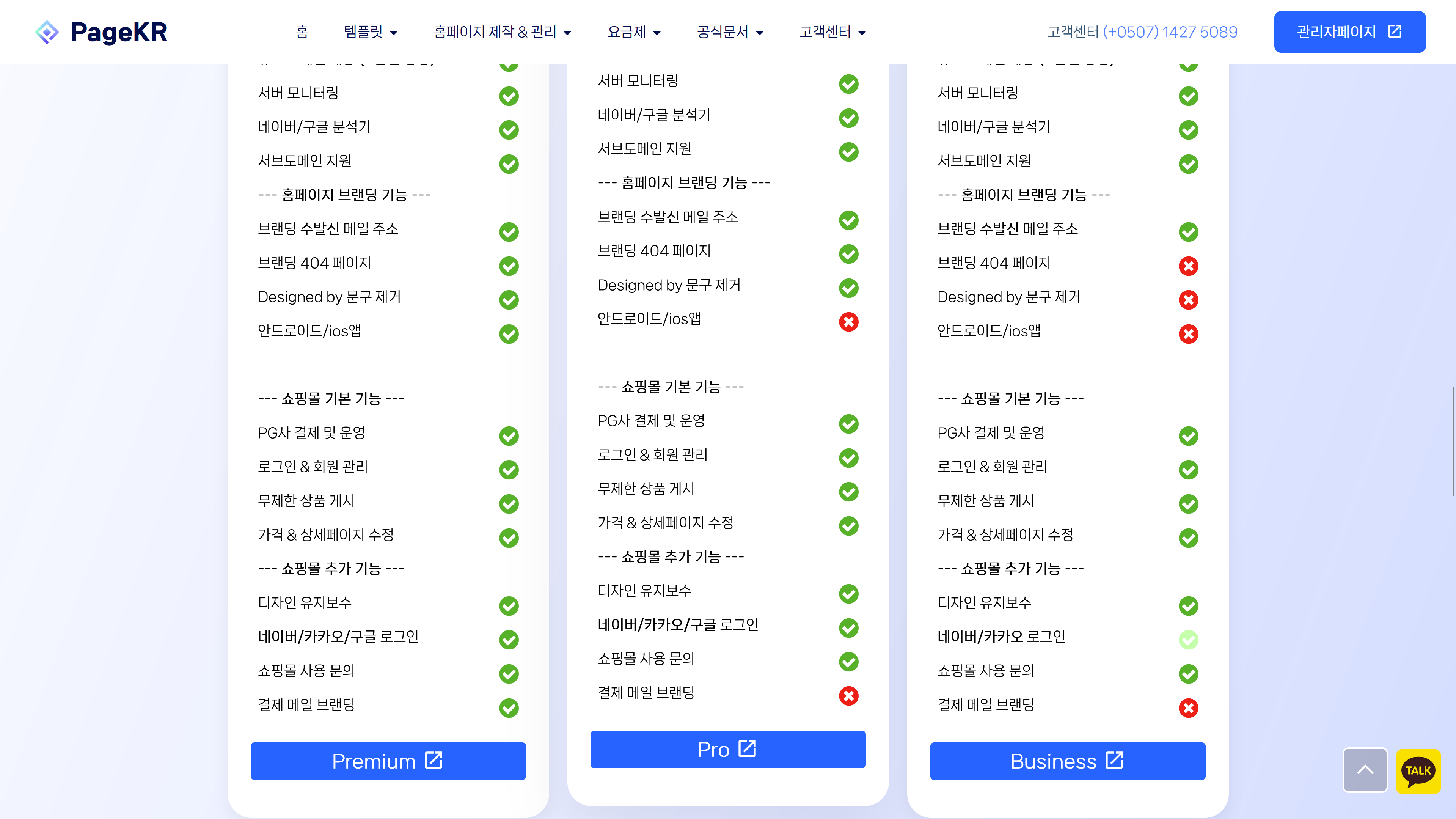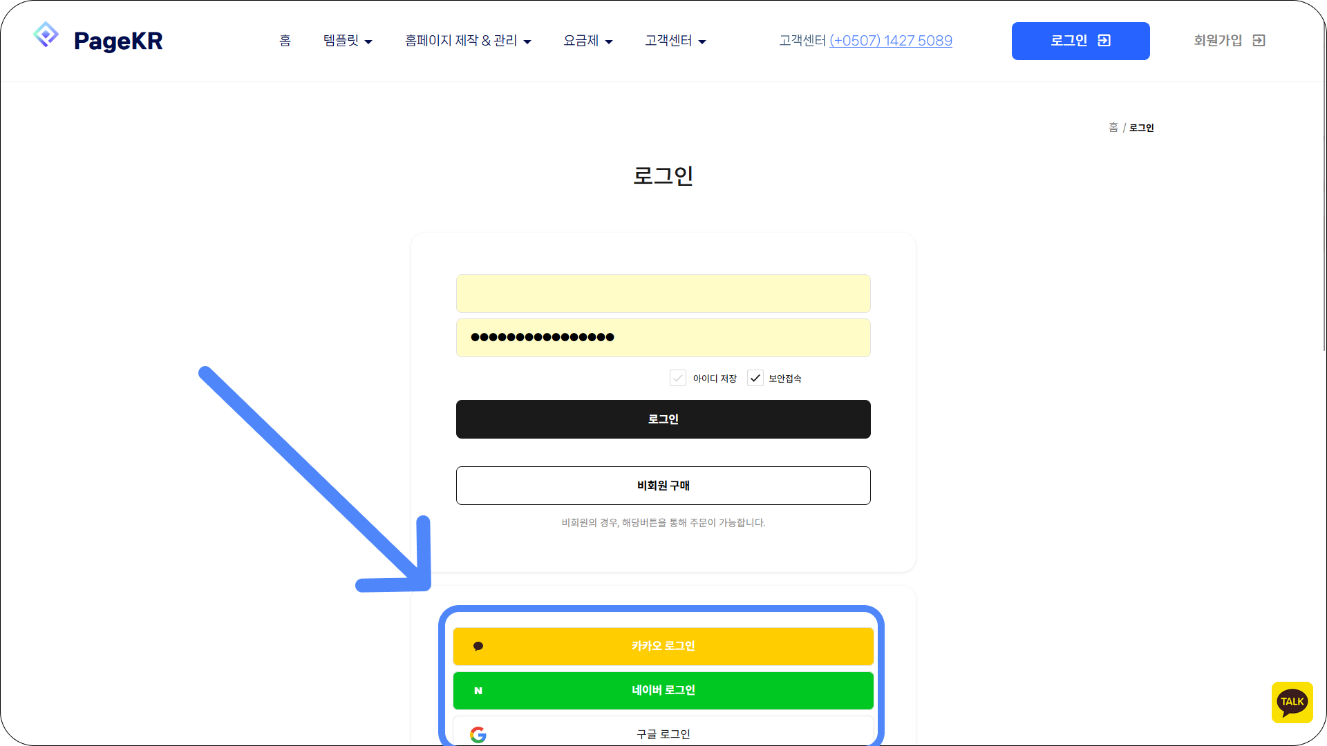 위 사진처럼 pageKR의 메인 홈페이지에 접속하시면 카카오톡 플러스친구 버튼을 보실 수 있습니다.