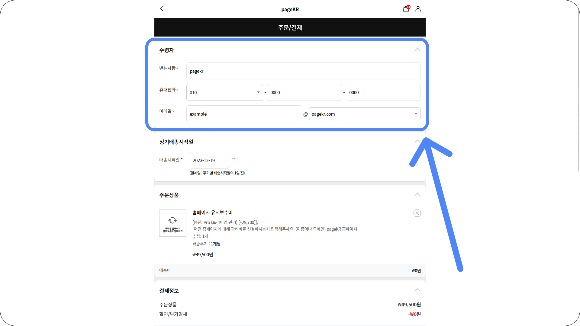 pageKR대신 사장님의 회사 이름 또는 홈페이지 이름을 적어주시면 됩니다.