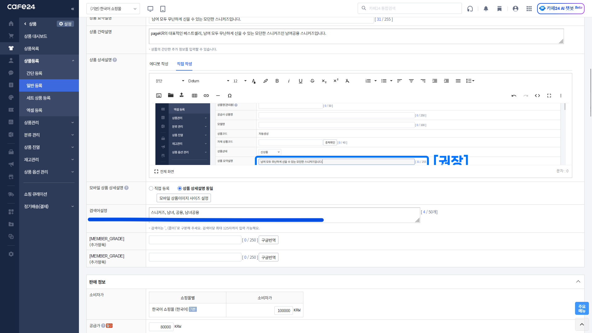 상품 상세설명은 상품의 상세페이지를 입력하는 창입니다.