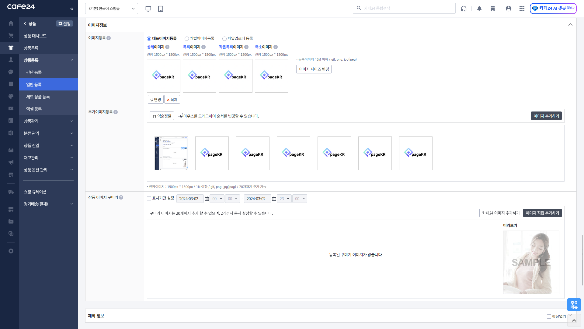 이렇게 추가 이미지로 여러 이미지를 등록하실 수 있습니다.