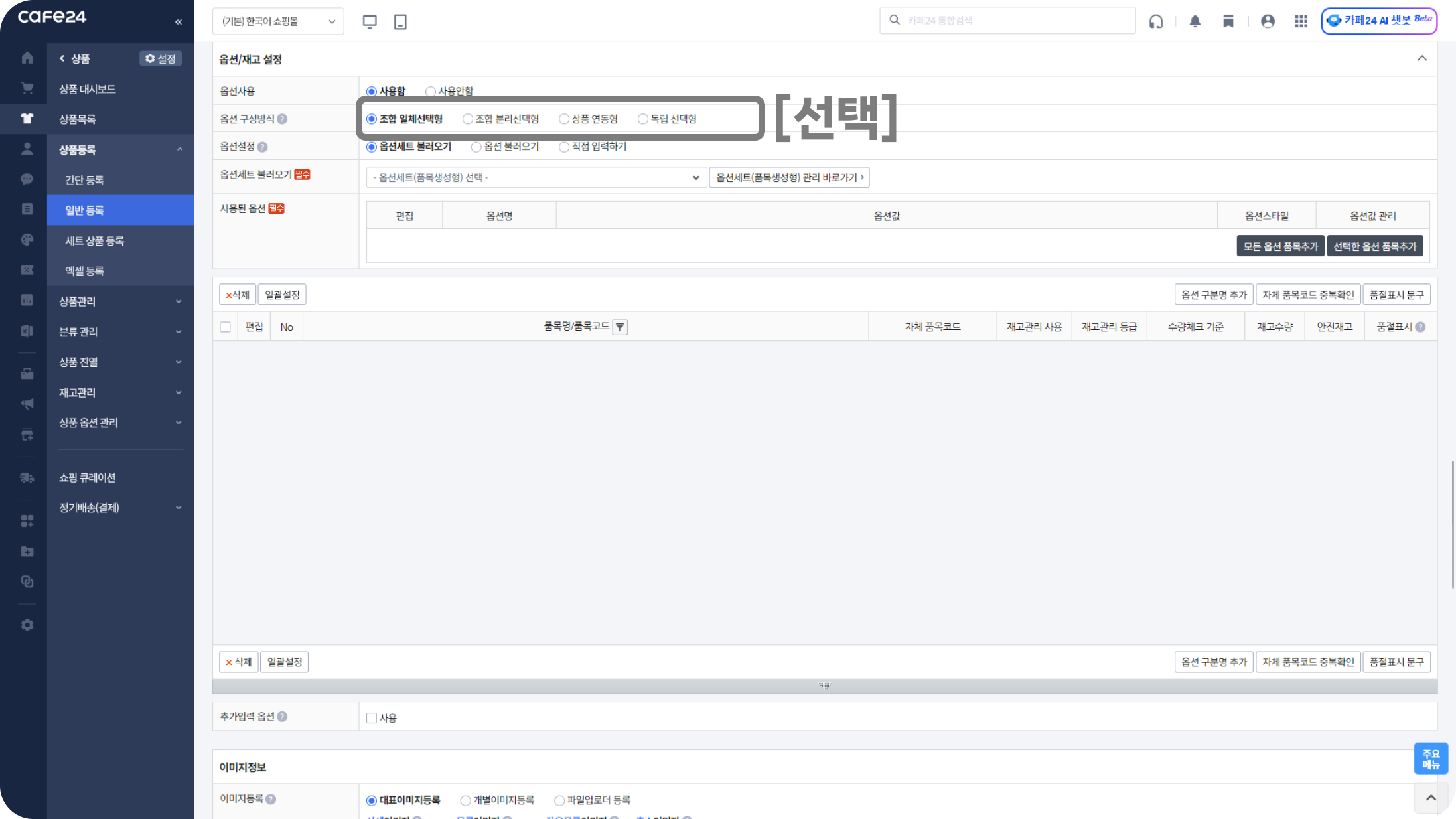 일반적인 옵션 설정을 원하신다면, 조합 일체선택형과 조합 분리 선택형을 추천드립니다.