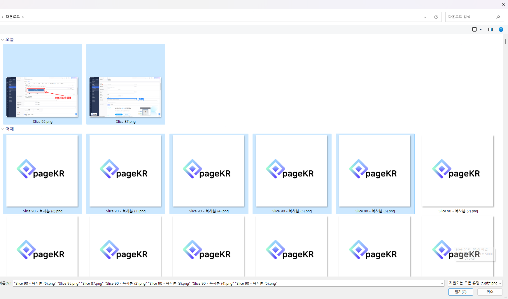 이렇게 파란색 색상으로 다중 이미지 등록 창이 뜹니다.
