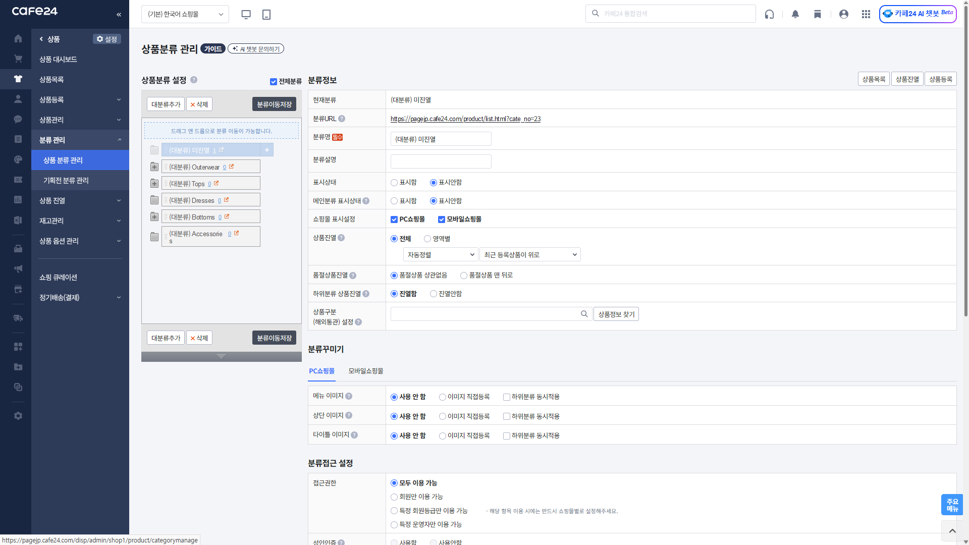 이렇게 현재의 상품 분류가 뜨는 것을 확인하실 수 있습니다.