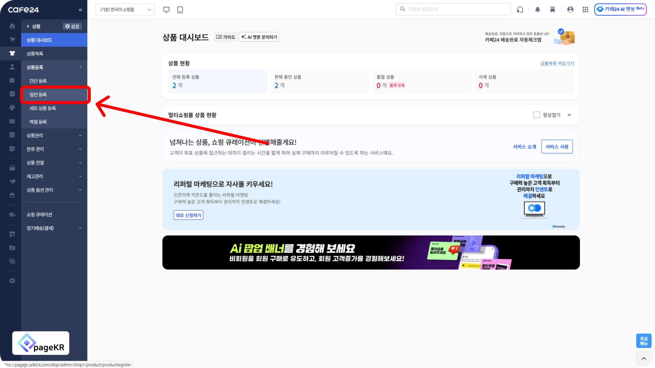 상품을 자세하게 등록할 수 있는 [일반 등록]을 클릭해주세요.