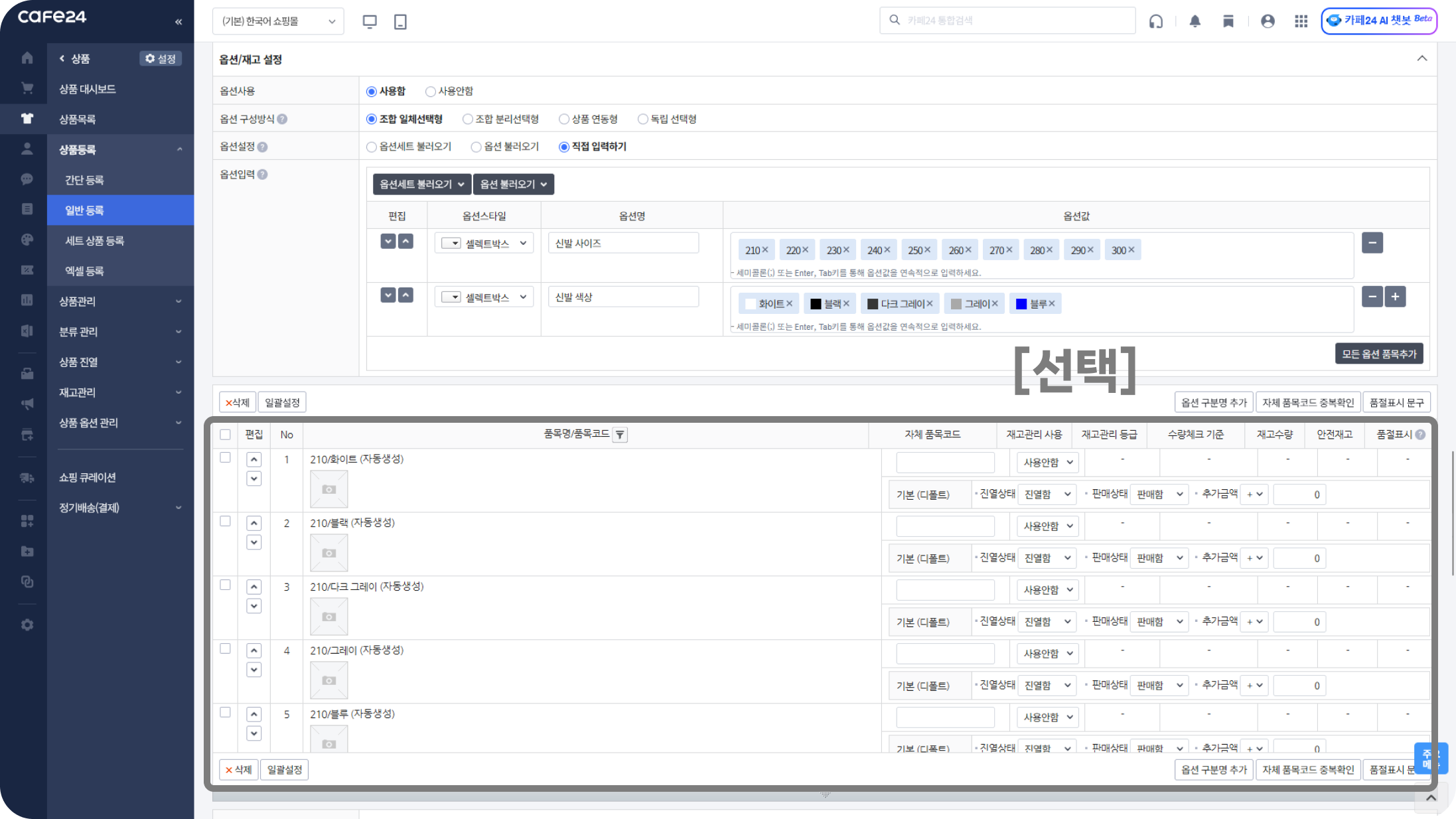 일반적인 옵션 설정을 원하신다면, 조합 일체선택형과 조합 분리 선택형을 추천드립니다.