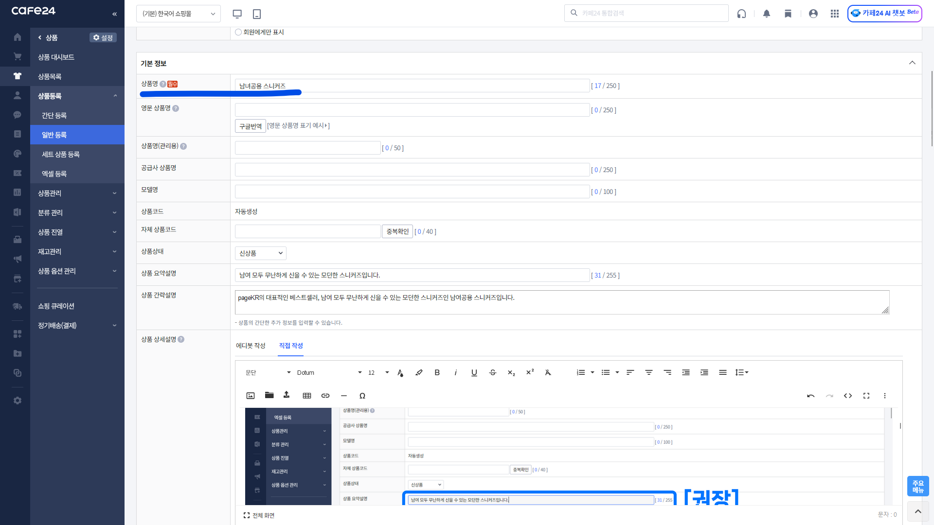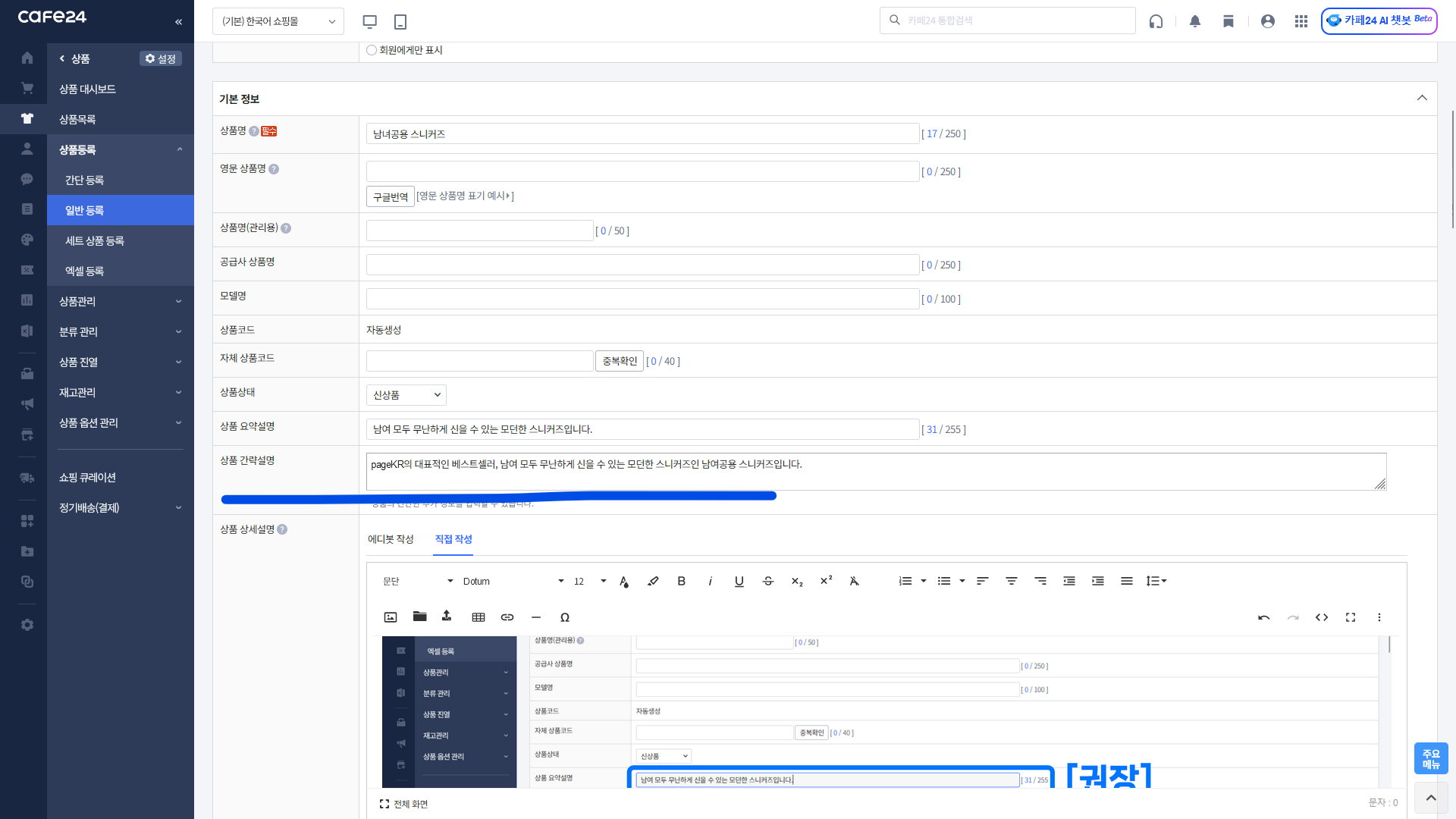 상품 상세설명은 상품의 상세페이지를 입력하는 창입니다.
