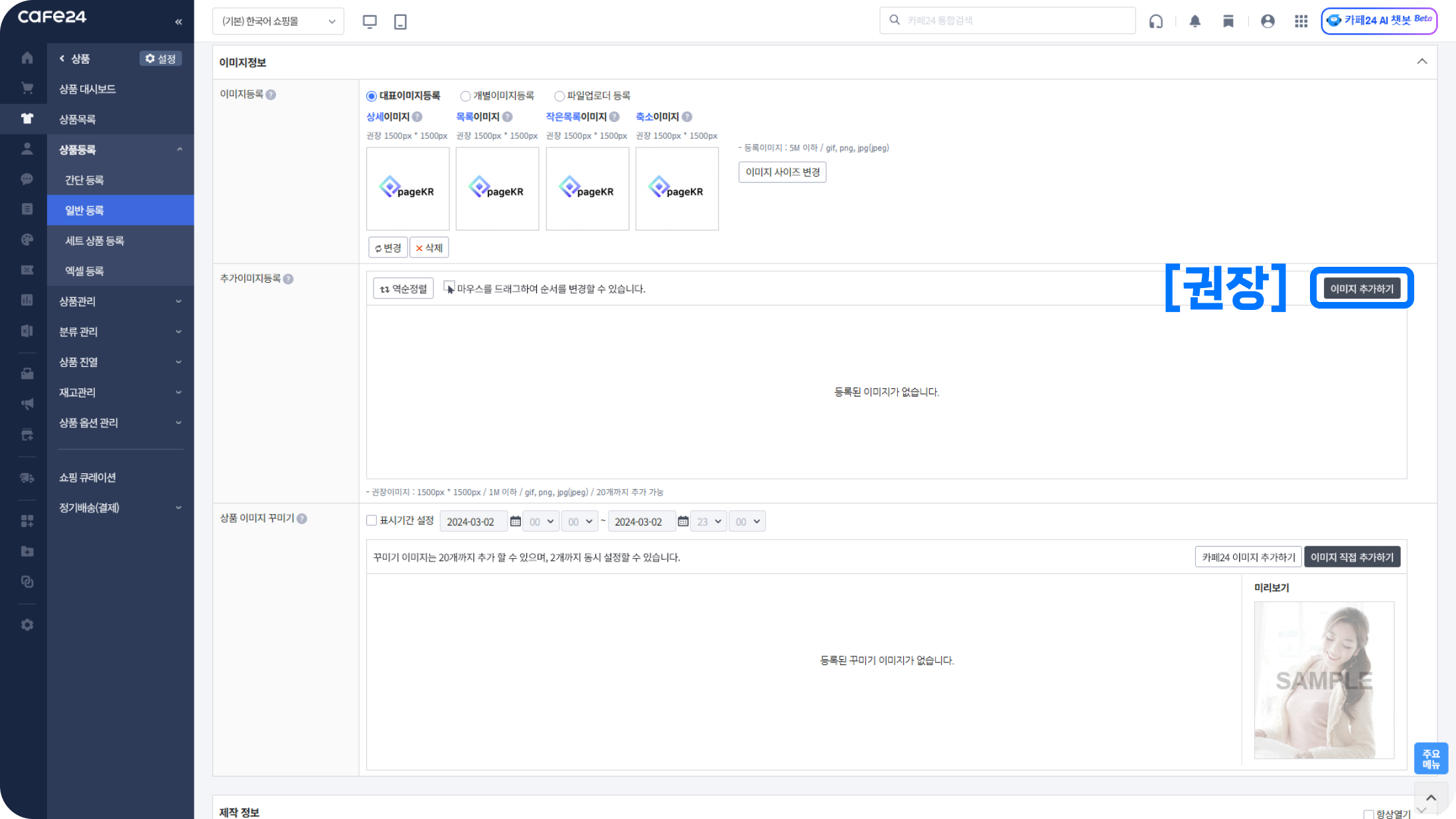 이렇게 추가 이미지로 여러 이미지를 등록하실 수 있습니다.