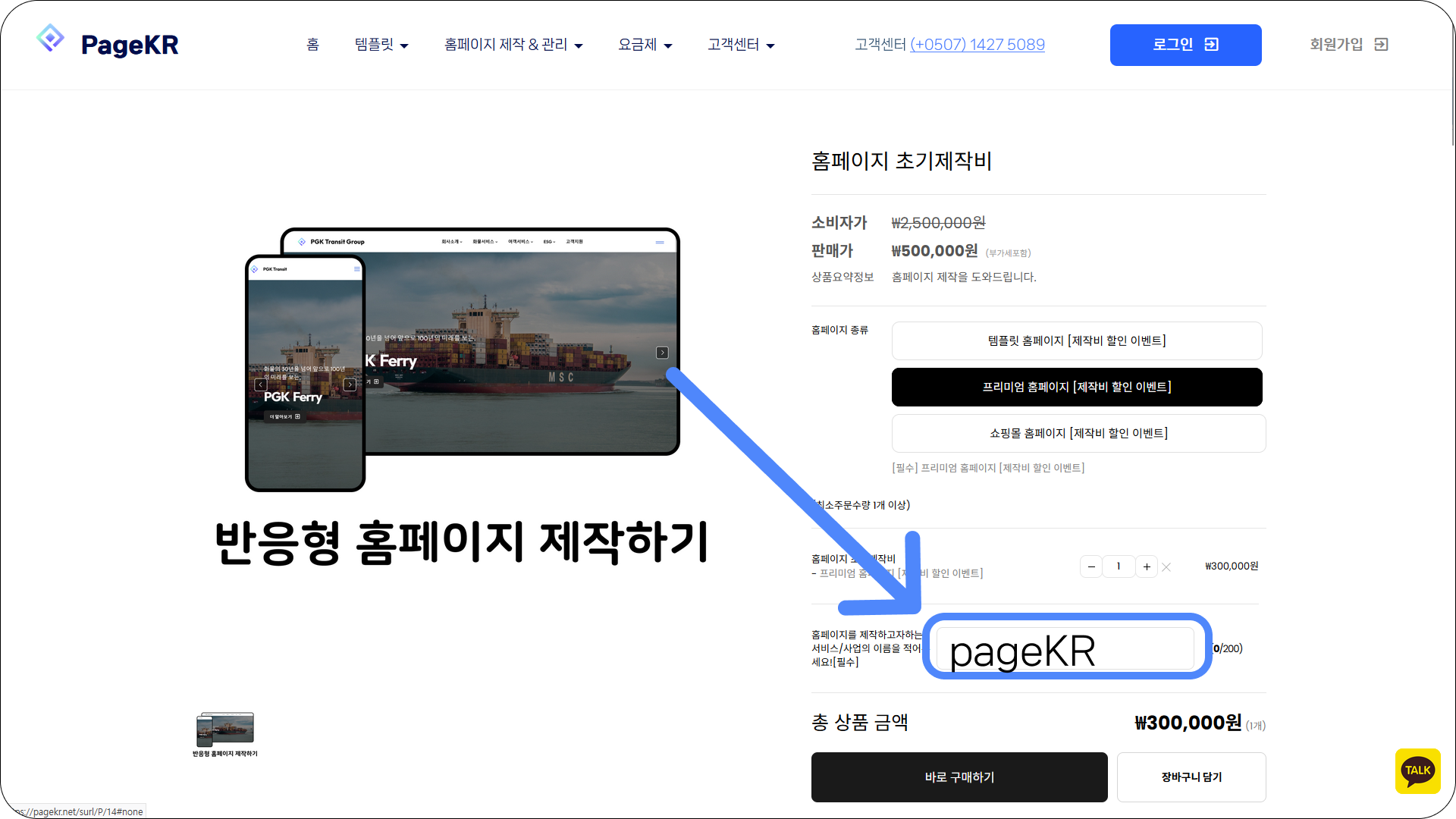 이렇게 홈페이지 초기 제작비를 안내하는 창이 뜹니다.