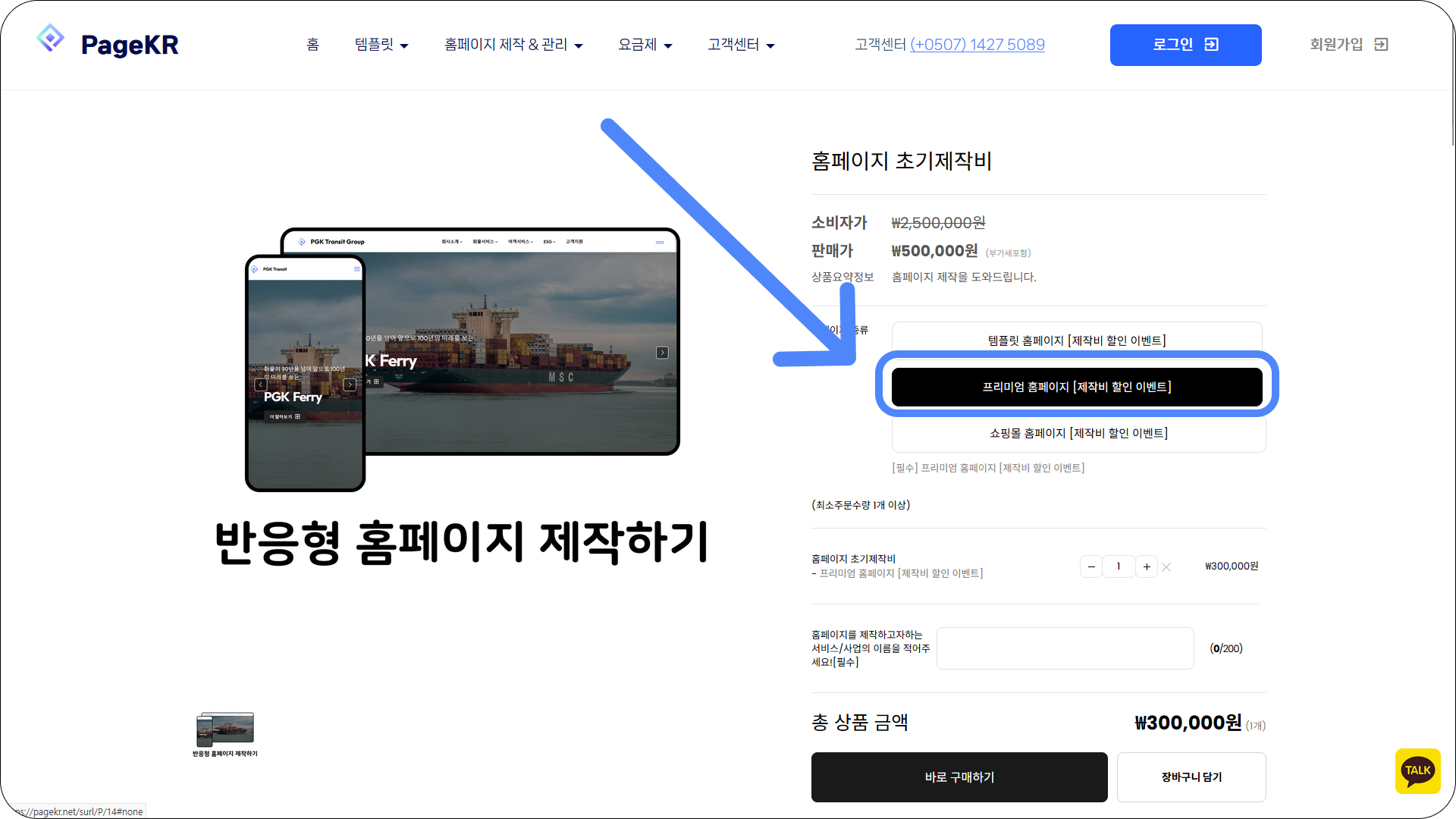 제작 요금제를 선택해주셨다면, 원하는 홈페이지의 파란색 버튼을 눌러주세요.